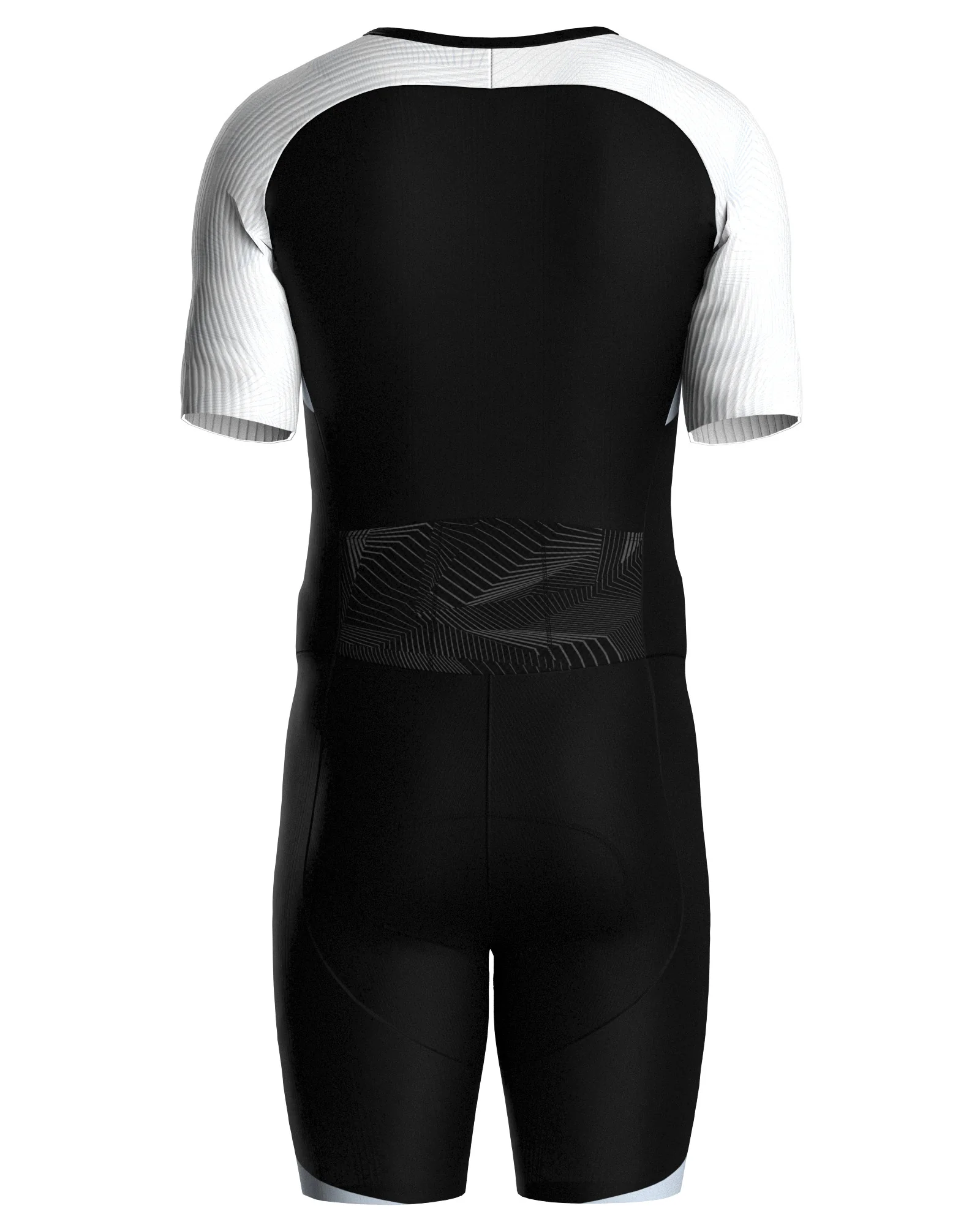 The premium short sleeve men’s trisuit from the ENDURA collection is a high-end, ultra-technical garment combining four fabrics for optimal comfort, ultra-fast drying, and maximum breathability. Its close-fitting cut, half sleeves, and full front zipper enhance aerodynamics and provide a second-skin feel. It is ideal for the most demanding triathletes.