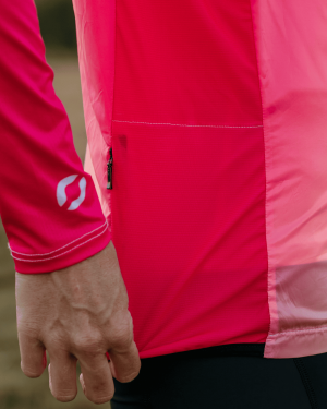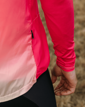 - Combinatie van 2 materialen: ultralichte microvezel windbreaker met DWR-behandeling + rekbaar ademend mesh aan de zijkanten